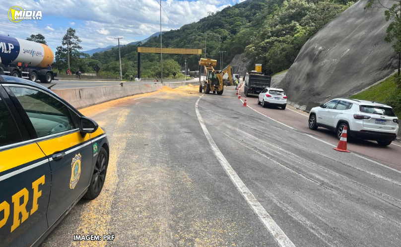 Tombamento de caminhão carregado de milho interdita totalmente a BR-376