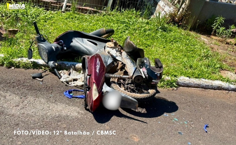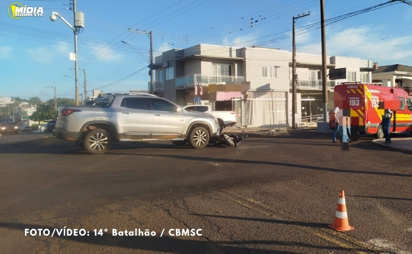Motociclista fica ferida em colisão entre Biz e caminhonete em Abelardo Luz