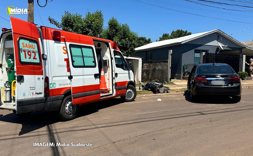 Motociclista fica ferido em colisão com carro em Santo Antonio do Sudoeste